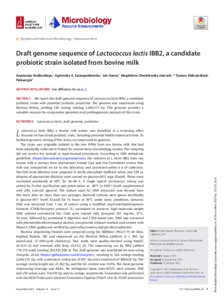 Vasileuskaya, Anastasiya and Szczepankowska, Agnieszka K. and Gawor, Jan and Chmielewska-Jeznach, Magdalena and Aleksandrzak-Piekarczyk, Tamara (2025) Draft genome sequence of Lactococcus lactis IBB2, a candidate probiotic strain isolated from bovine milk. Microbiology Resource Announcements, 14 (11). e00846-25. ISSN 2576-098X